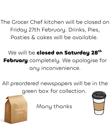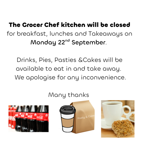 If you would like to be informed each week please email us thegrocerchef@gmail.com and ask to be added to our mailing list. Alternatively please keepan eye out on our Facebook page www.facebook.com/grocerchef