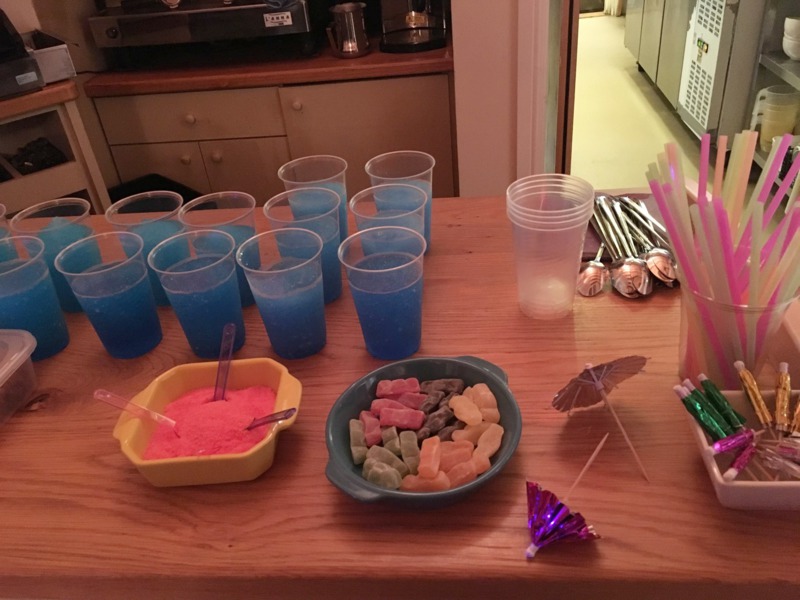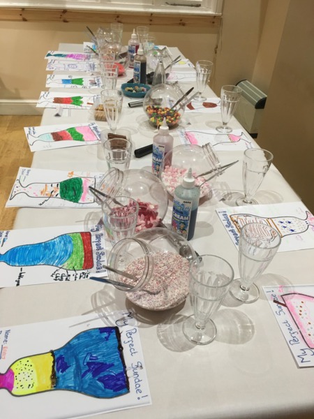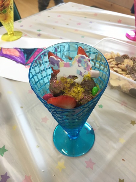 Another recent party for a 6 year old girl included designing their own sundaes with different craft supplies, blue raspbrry flavour Slushies and making their own sundaes.They also finished their party with Ice Cream sweet cones for their guests instead of traditional party bags.